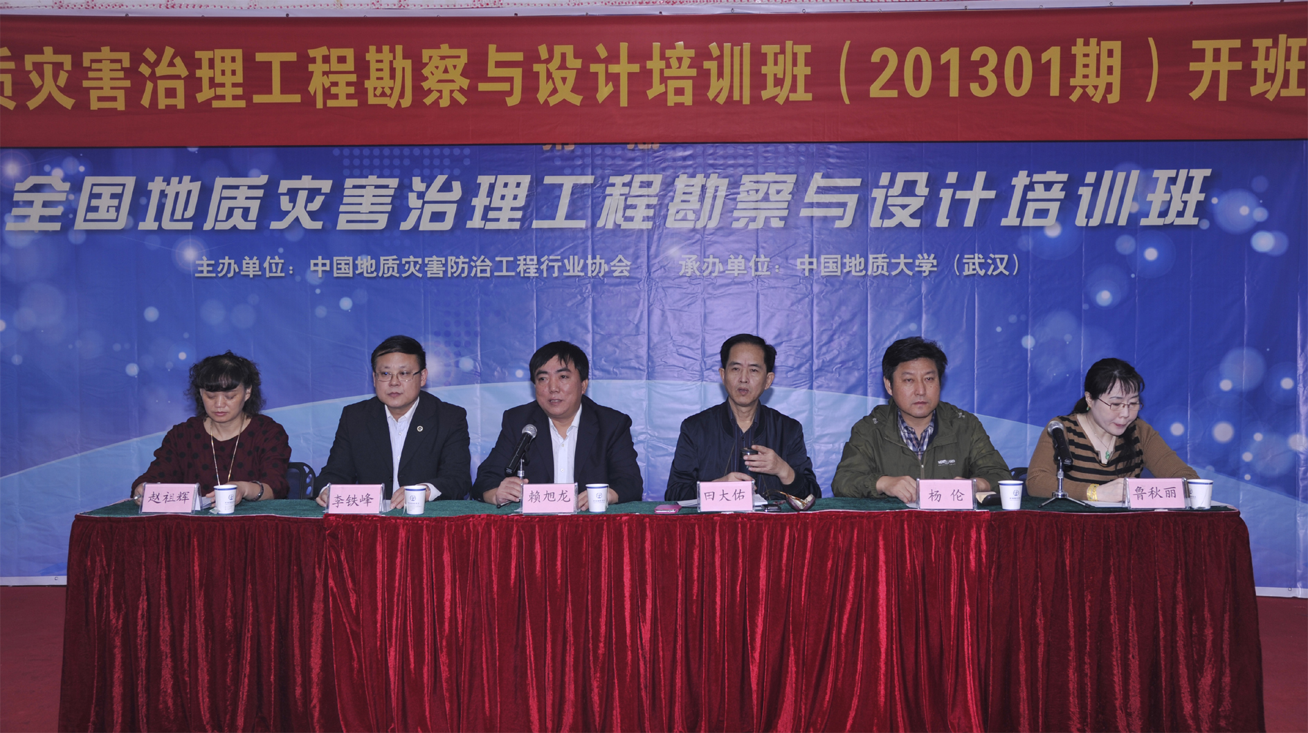 全国地质灾害治理工程勘察与设计培训班(201301期),于2013年10月30日—11月3日在湖北凯瑞蓝箭酒店武汉市开班。来自全国各地,拟承担地质灾害治理工程勘察与设计业务的39家单位,选派了216名业务骨干参加了培训。