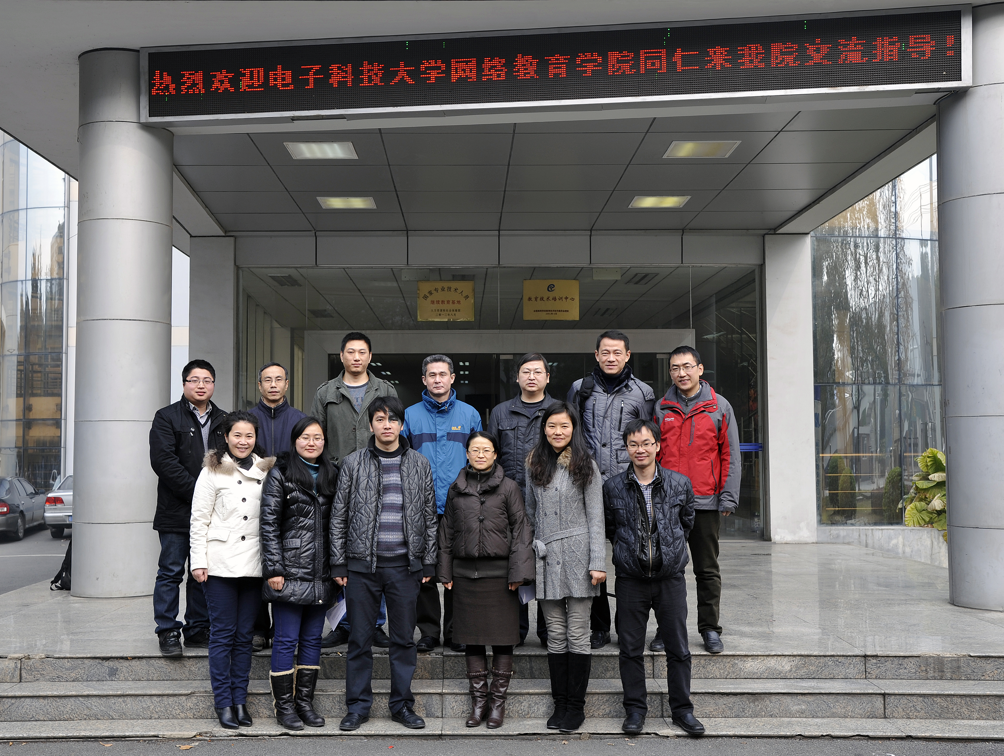 2014年元月9日上午电子科技大学网络教育公司赵蓉、陈华安主任一行四人来公司做教学及考试管理等工作交流。