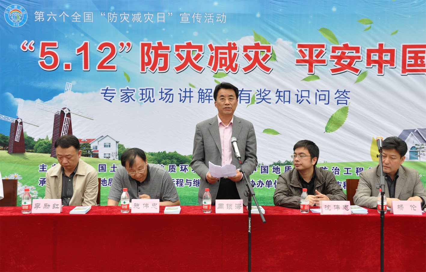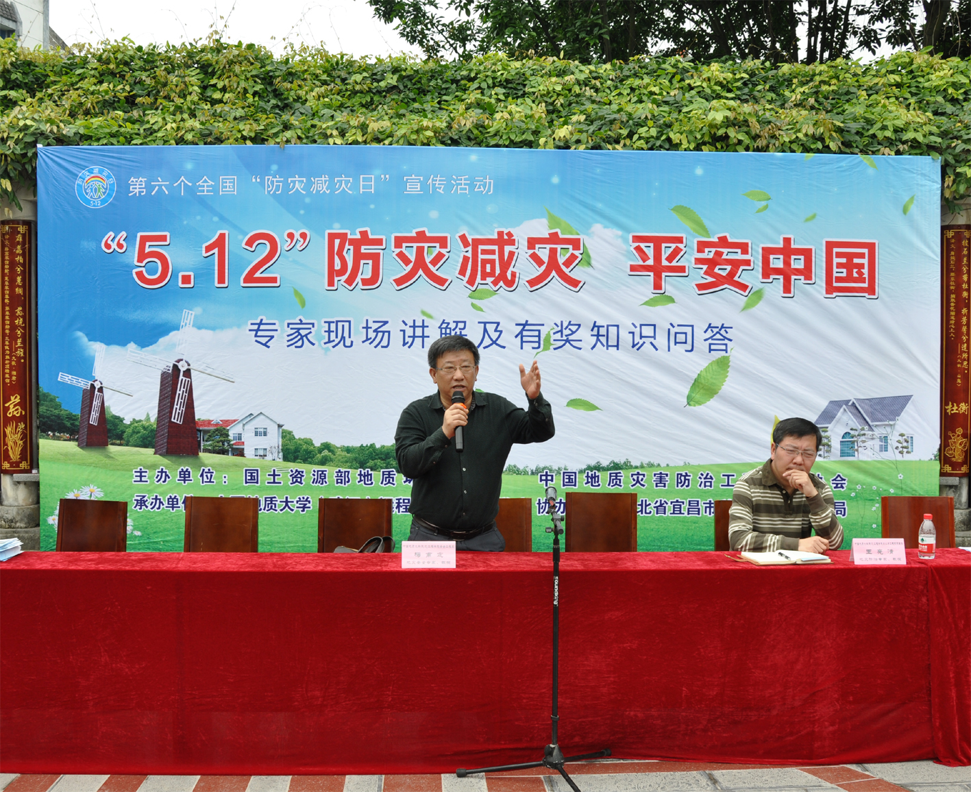 来自中国地质灾害防治工程行业协会周锁海副会长、李励红副秘书长;国土资源部地质环境司灾害处沈伟志副处长;湖北省国土厅地环处施伟忠处长;秭归县余志训副县长、徐家忠副县长、县科学技术局刘方局长、县国土资源局党组成员余祖湛总工程师等领导出席了宣传活动的开幕仪式。Beats365唯一官网入口杨伦书记主持了开幕式。开幕式上余志训副县长介绍了秭归县防灾减灾的基本情况以及秭归县采取的防震减灾措施;沈伟志副处长介绍了我国地质灾害的基本分布以及防灾减灾的基本情况;周锁海副会长宣布“5.12防灾减灾平安中国宣传活动”启动。