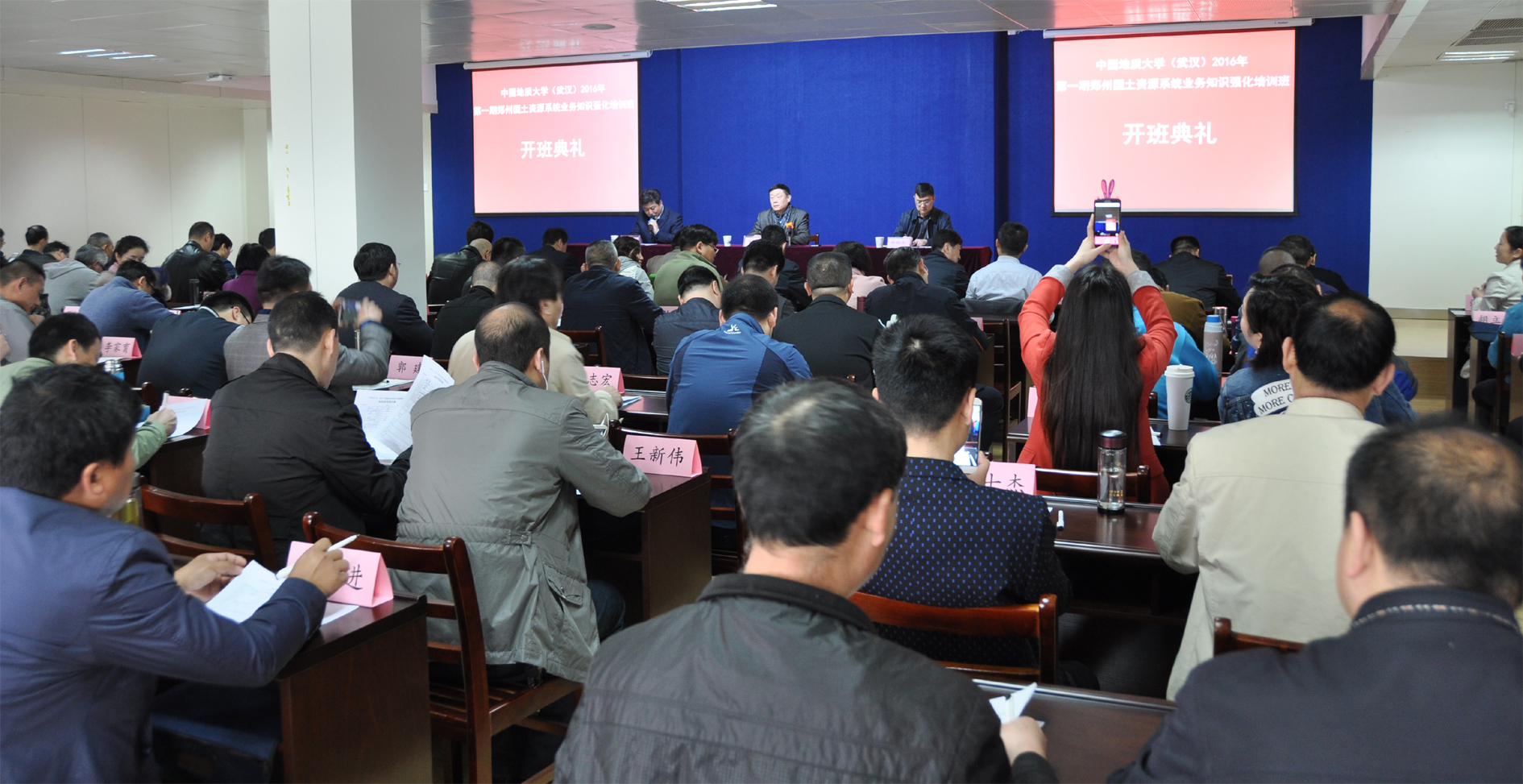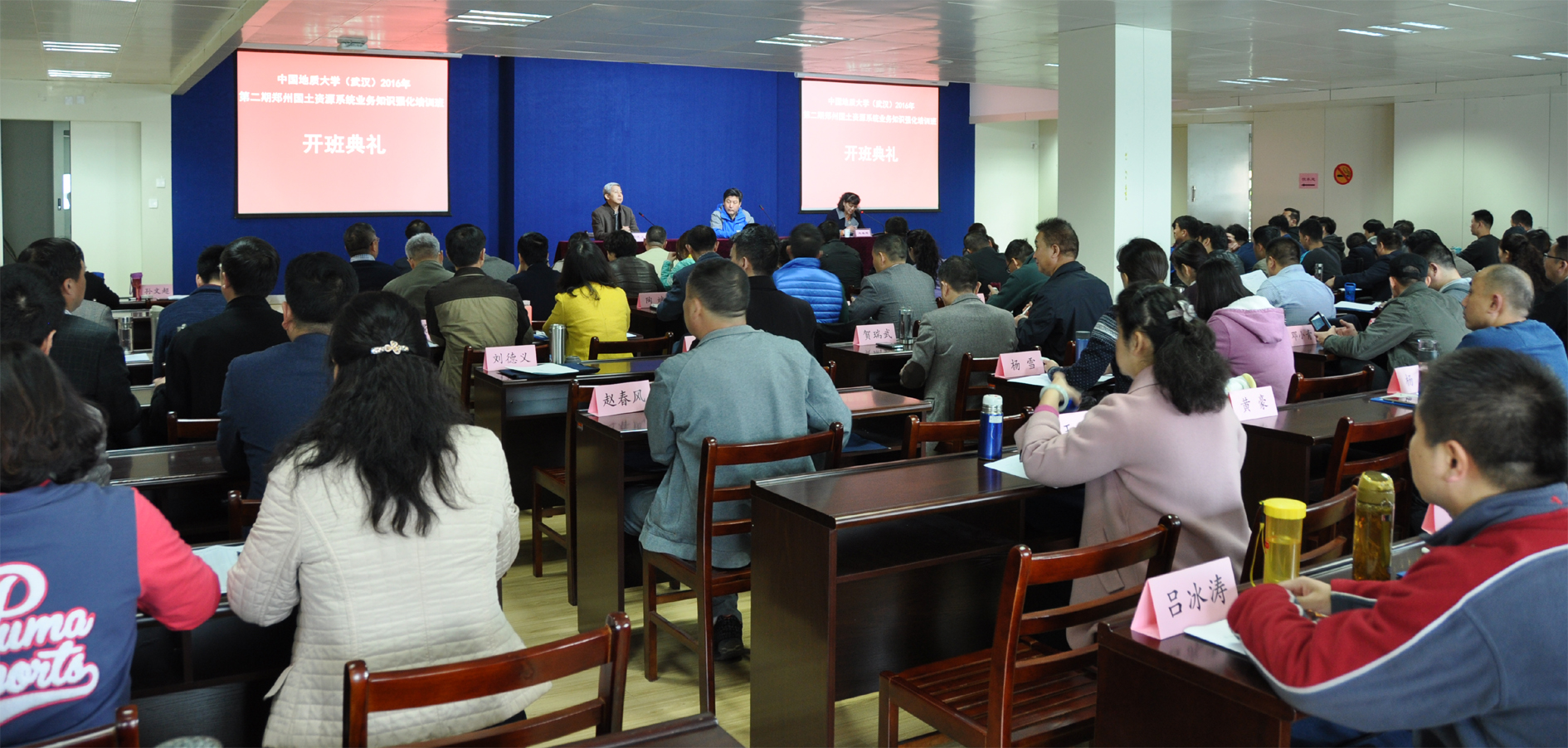 2016年3月19日上午、2016年3月27日上午在Beats365唯一官网入口办公楼三楼学思堂分别举行了《2016第一期郑州国土资源系统业务知识强化培训班》及《2016第二期郑州国土资源系统业务知识强化培训班》开班典礼。出席开班典礼的领导分别有:Beats365唯一官网入口党委副书记傅安洲、河南省郑州国土资源局党组成员徐铭杰调研员、河南省郑州市国土资源局土地储备中心副主任刘德义、Beats365唯一官网入口书记杨 伦、Beats365唯一官网入口副经理赵祖辉。