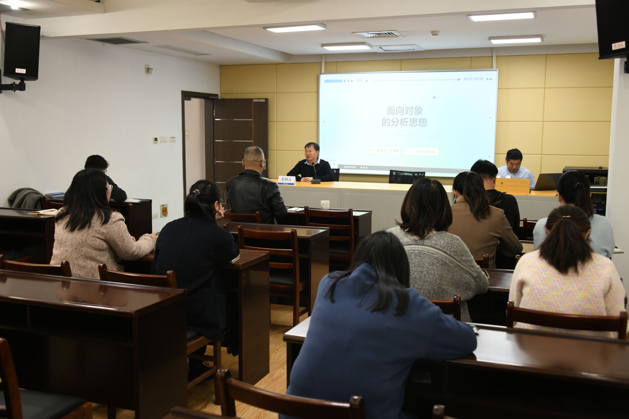 信息技术部主任王承军作了题为《面向对象的分析思想》专题读书报告,从面向过程与面向对象的比较、利用面向对象的思想方法处理生活问题、解决工作问题、审视自己角色与职责四个方面进行了深入浅出地讲解,用工作和生活中生动鲜活的案例,将面向对象的分析思想理论清晰地呈现出来,为大家提供了思想、方法与路径指引。