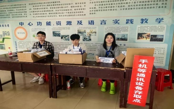 考生入场前,考生手机统一存放在手机存取处,并核对考生信息及身份证的准确性,只有核验无误的考生方可入场进行考试。考试期间,监考和考务人员严守考试规章制度,规范操作,确保考试的平稳有序进行。全体考生遵守规则,诚信考试,展现了良好的考风。