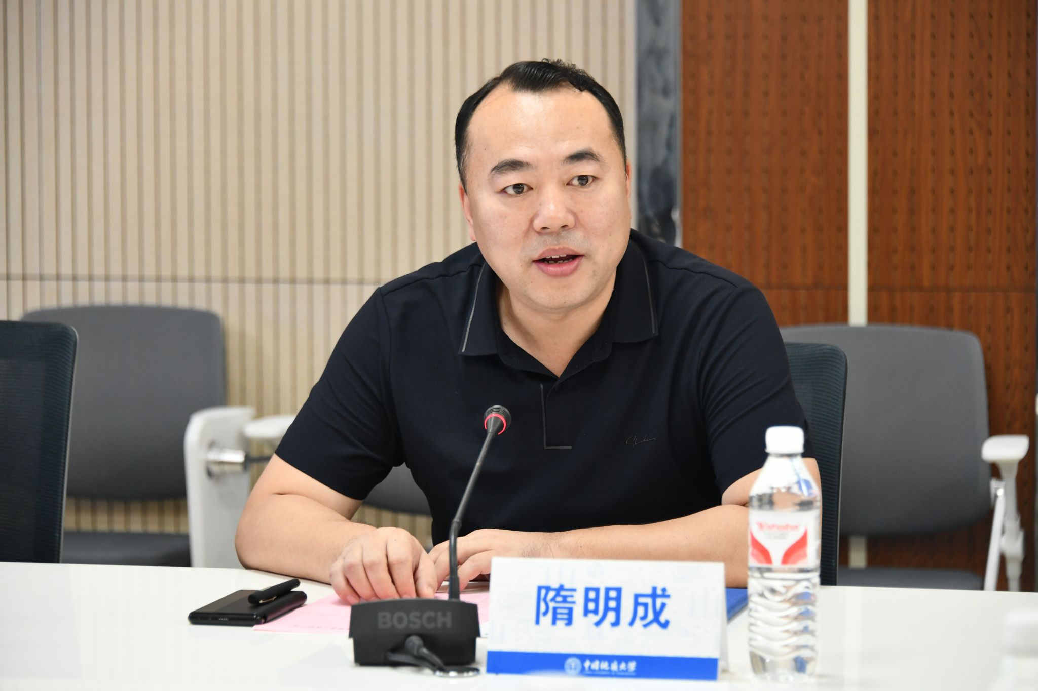 隋明成在研讨会上致辞。他首先对南方测绘集团郭宝宇副总裁一行来校访问交流表示欢迎,他向郭宝宇副总裁一行介绍了公司基本情况,公司人才培养情况和办学特色。他表示,教育需有情怀,在国家产教融合、科教融汇政策的指导下,有各位专家、教授及企业技术人员的加盟,相信可以为测绘专业发展、人才培养贡献集体智慧和力量。