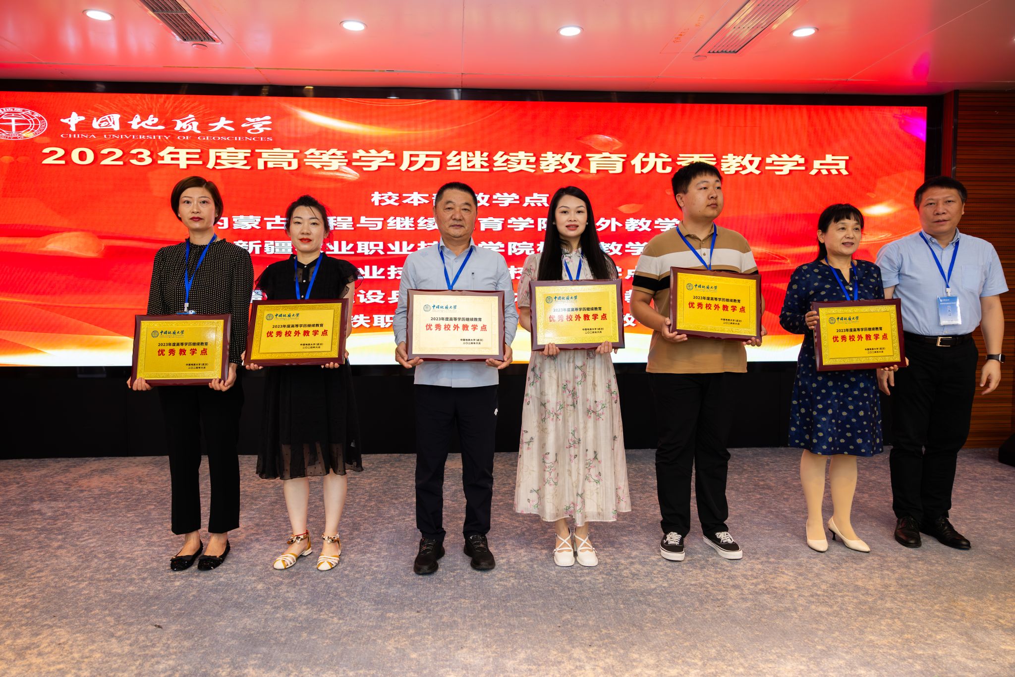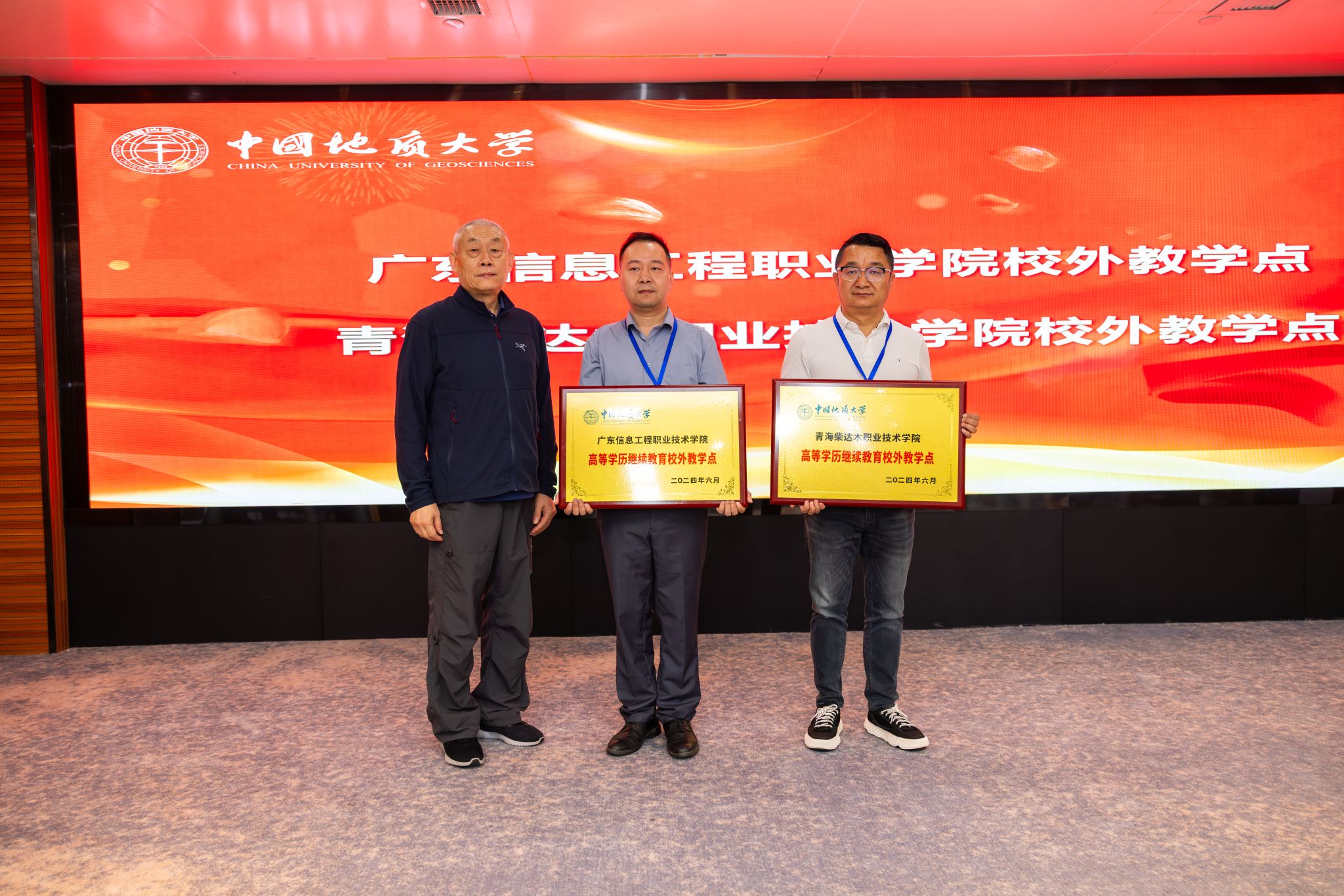 会上,宣读了《关于公布公司2024年高等学历继续教育校外教学点设置备案结果的通知》,并对2024年新增的两个校外教学点进行授牌。