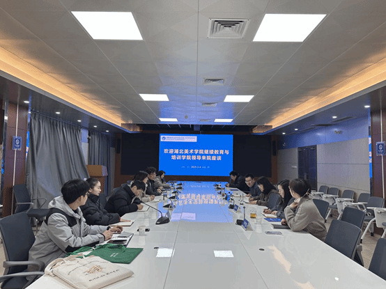 何明简要介绍湖北美术公司继续教育与培训公司的基本情况、主要业务发展现状以及此次调研的目的,希望双方能就培训和同硕等方面的工作开展交流。
