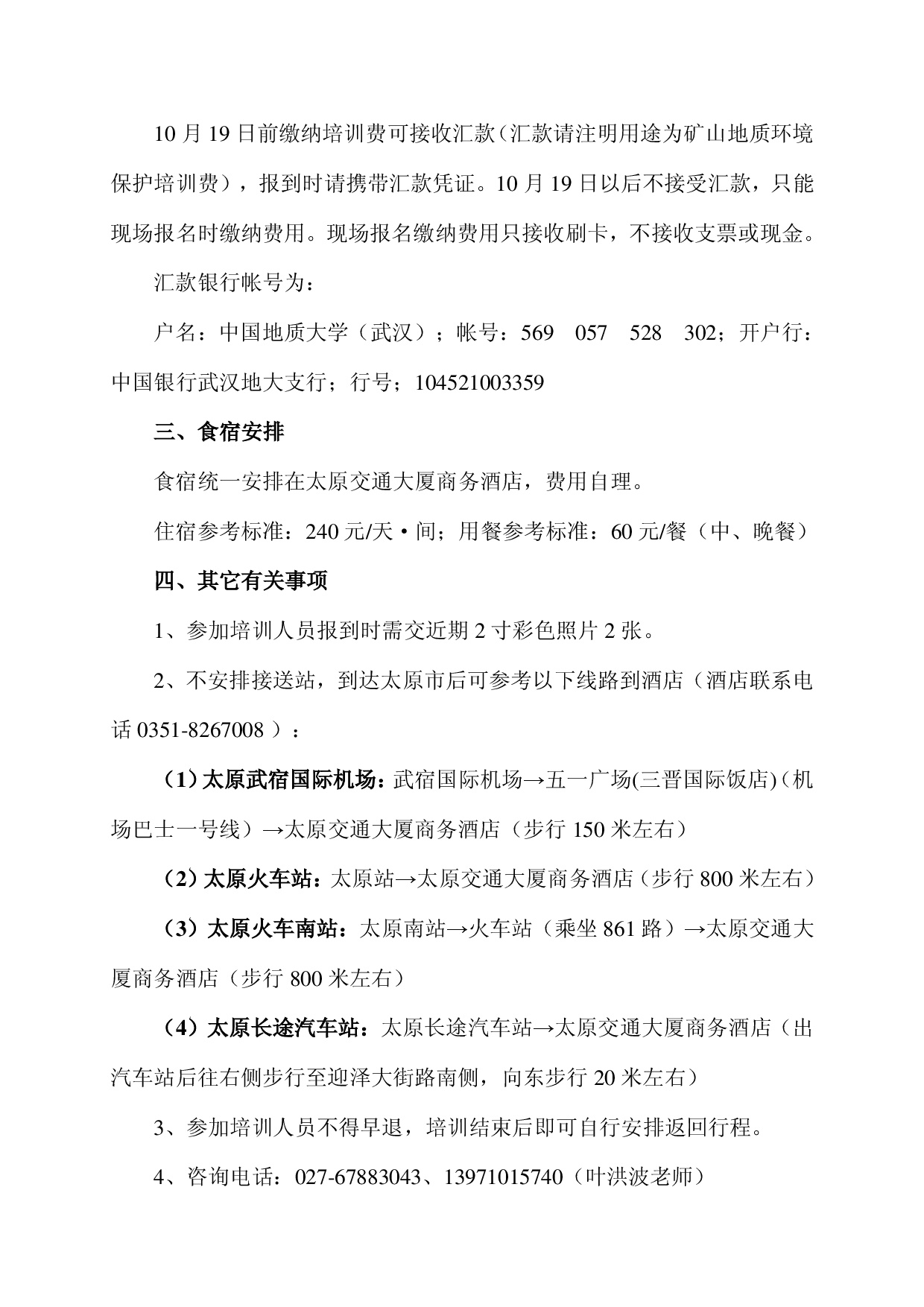 在太原市举办矿山地质环境保护培训班的第二号通知