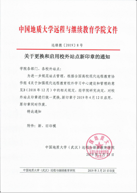 远继教〔2019〕8号《关于更换和启用校外站点新印章的通知》
