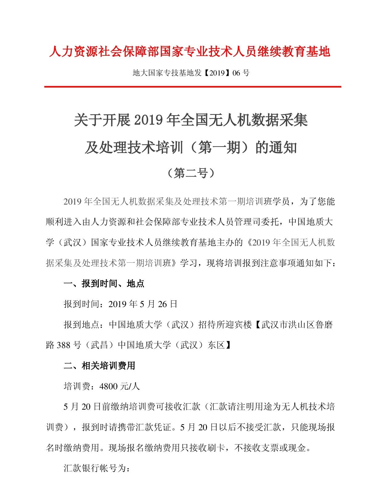 2019年无人机数据采集及处理技术培训(第一期)的通知(第二号)