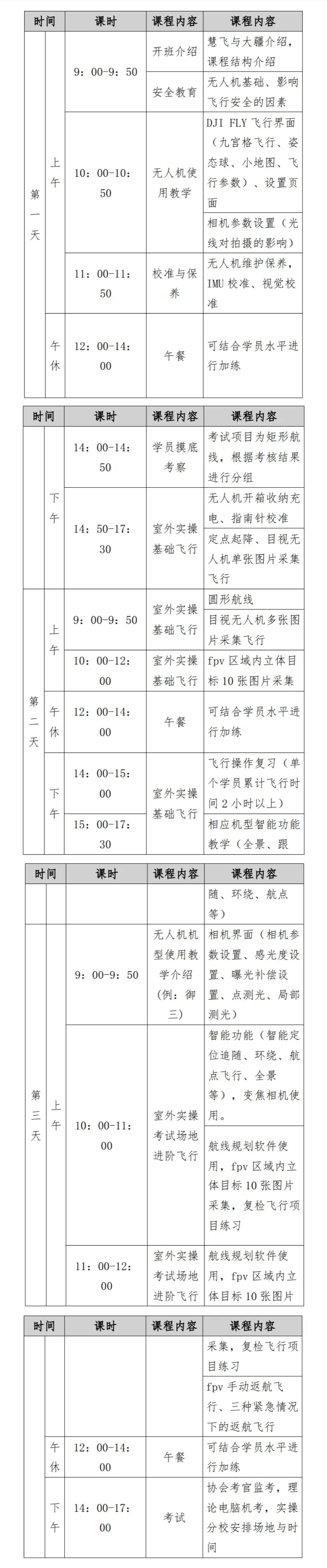 (1)实操训练:组织学员进行无人机实操训练,包括飞行任务的规划与实施、飞行数据的记录与分析等。