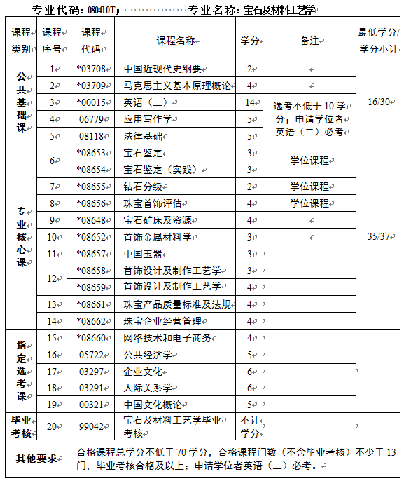 2、本科专业。本专业计划中,公共基础课合格课程不低于14学分,专业核心课合格课程不低于35学分,合格课程总学分不低于70学分,合格课程门数不少于13门,完成专业计划规定的毕业环节要求。