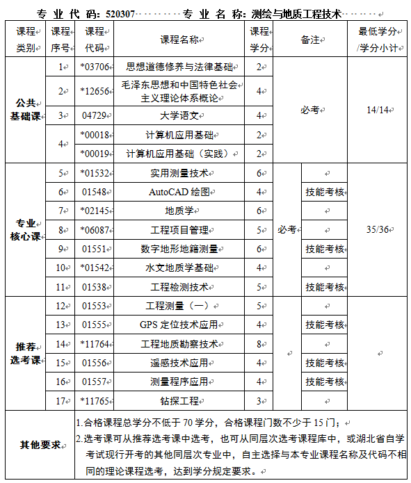 1、专科专业。本专业计划中,公共基础课合格课程不低于14学分,专业核心课合格课程不低于35学分,合格课程总学分不低于70学分,合格课程门数不少于15门,完成专业计划规定的毕业环节要求。
