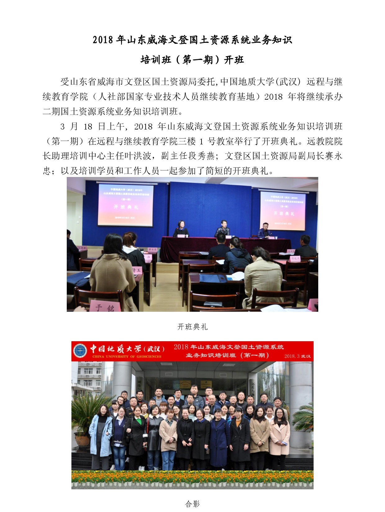 2018年威海文登国土资源业务培训班(第一期)开班