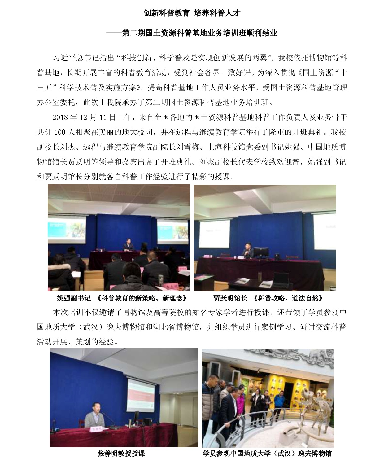 创新科普教育 培养科普人才——第二期国土资源科普基地业务培训班顺利结业