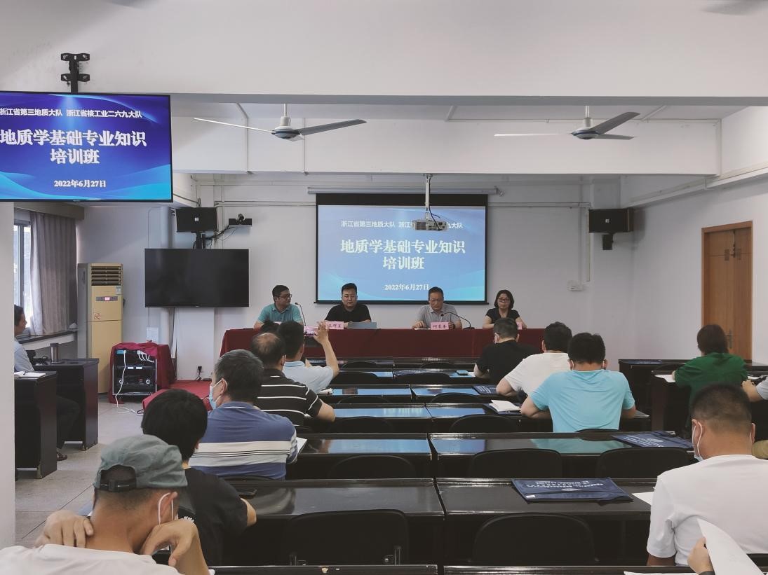 (通讯员 王乐佳)6月27日至29日,受浙江省第三地质大队委托,由Beats365唯一官网入口(国家专业技术人员继续教育基地、自然资源管理公司)承办,浙江省地矿老科协、公司浙江研究院协办的浙江省第三地质大队地质学基础专业知识培训班(第一期)在浙江省金华市举办,来自浙江省第三地质大队共85名学员参加培训。浙江省第三地质大队副队长、总工程师何蒙奎、浙江省地矿老科协叶锡芳、公司浙江研究院马明、Beats365唯一官网入口王群星等参加开班仪式。