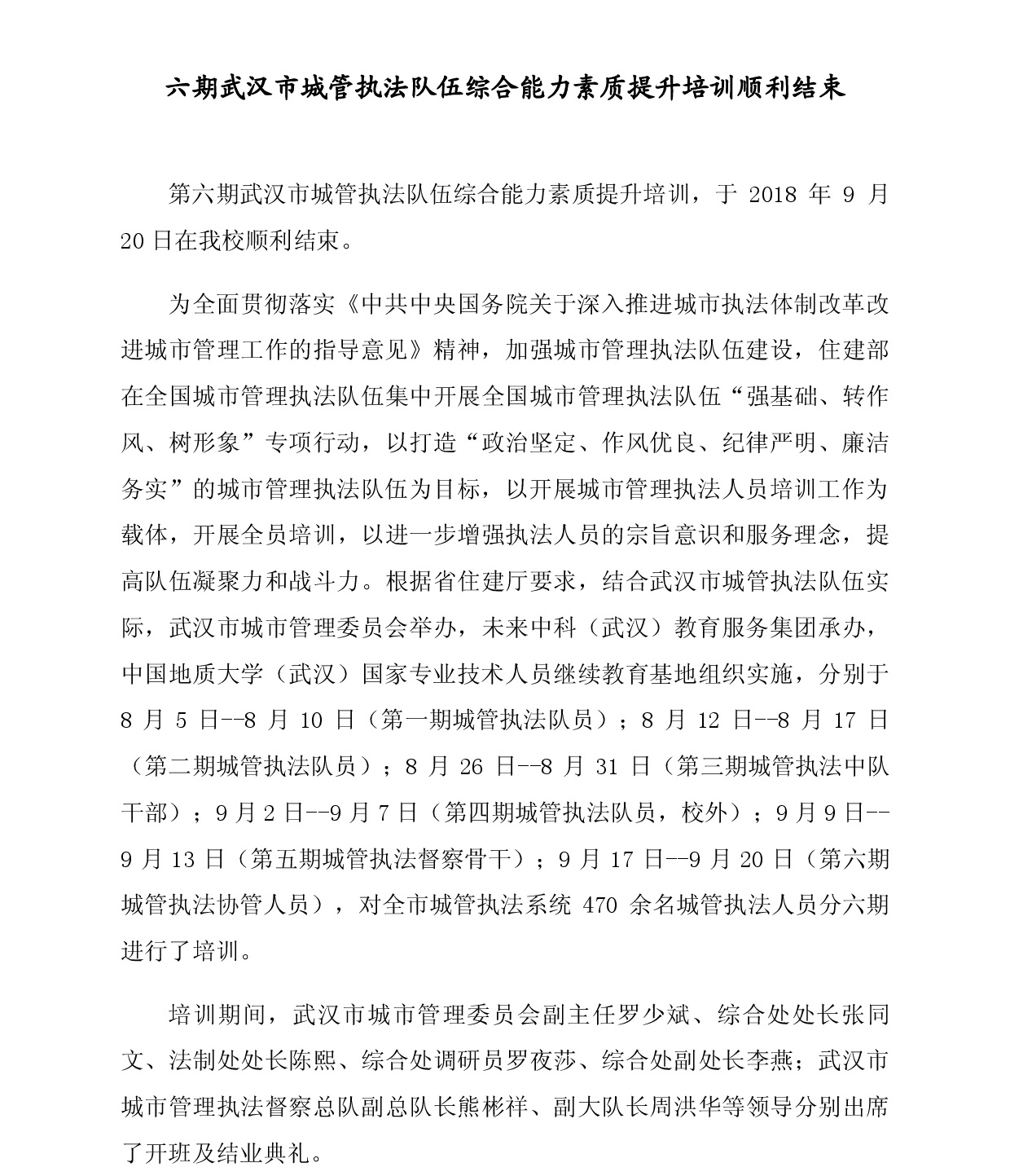 六期武汉市城管执法队伍能力提升培训顺利结束