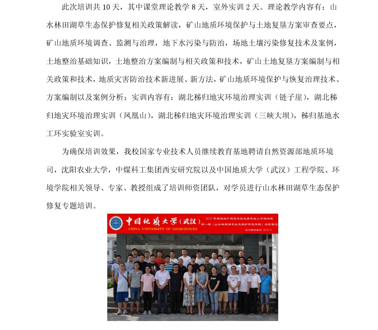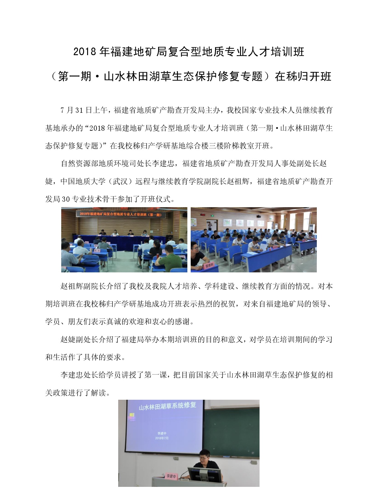 福建地矿局复合型地质人才培训班(第一期)在秭归开班