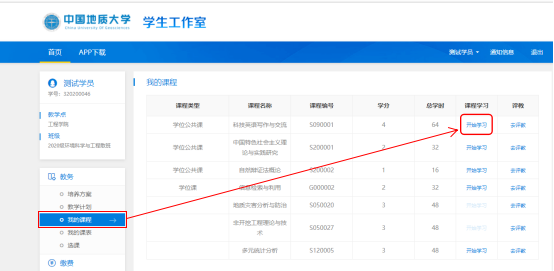直播课程: 在左侧功能栏中选择“我的课程”,点击“开始学习”,选择“课件”,点击直播课程所在的章节,进入直播课程。具体步骤如下:
