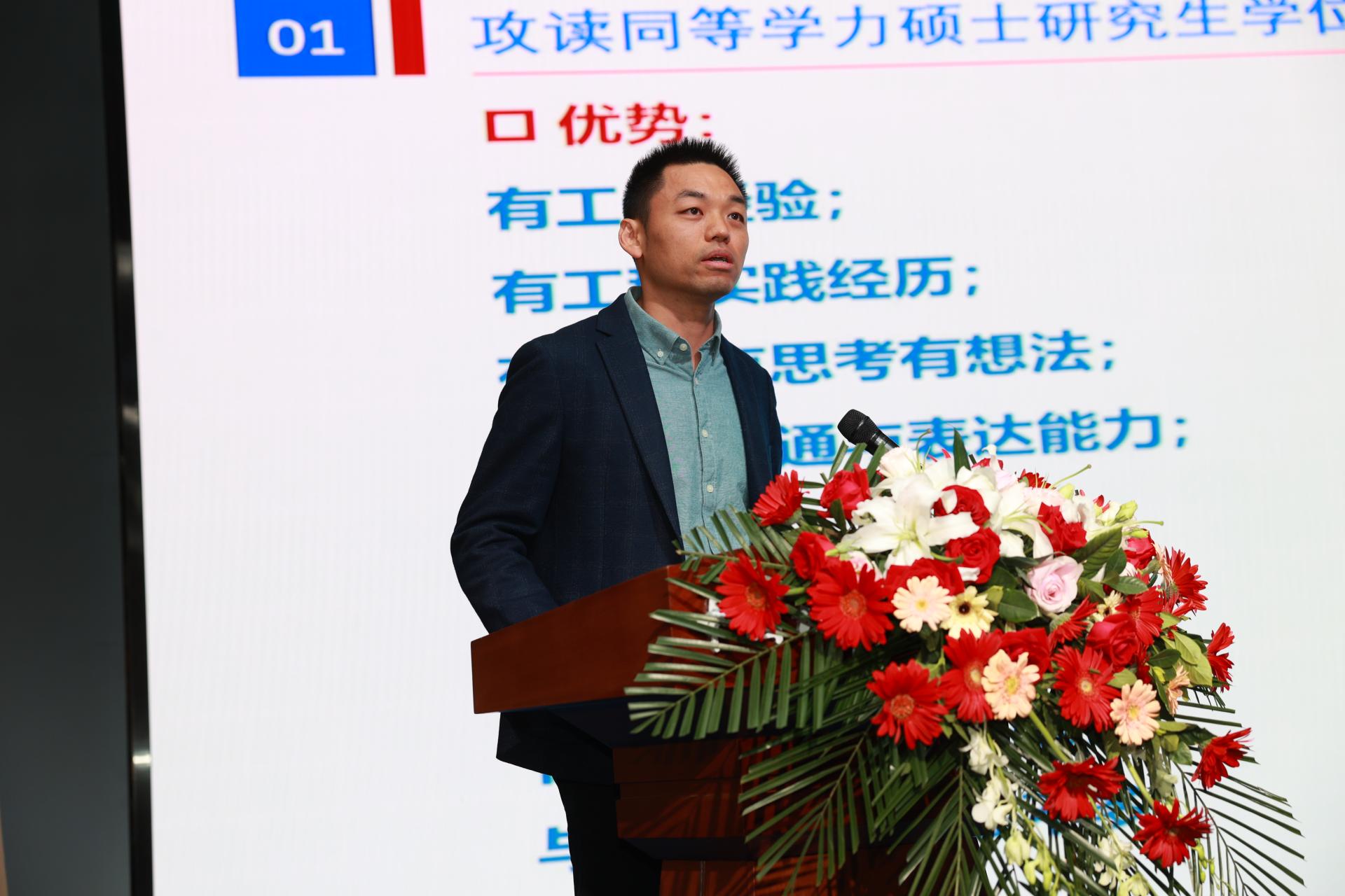 研究生导师代表、环境公司曾斌老师分析了攻读同等学力硕士研究生学位的优势与难点,并从“上好课、选好题、重提升、早启动、勤沟通、再坚持”六个方面对同学们提出了意见与建议。他希望同学们在接下来的学习生活中,能够欣赏地大之美、博学地大之识、传承地大之魂。