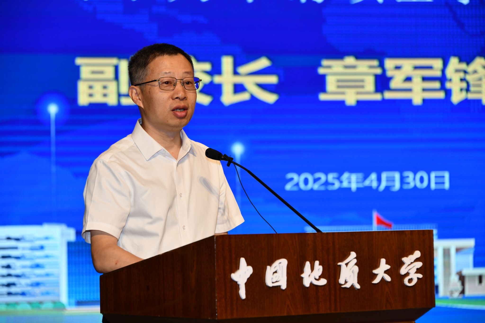 副董事长章军锋向2025级同硕研究生表示欢迎,并以《志存高远追梦想,砥砺奋进新征程》为题发表讲话。他说,地大不仅拥有深厚的历史积淀,更具备服务国家战略、引领行业变革的硬核实力。作为行业骨干,同学们选择在职深造,既是个人职业发展的跃升,更是以实际行动响应“教育强国”的使命召唤。