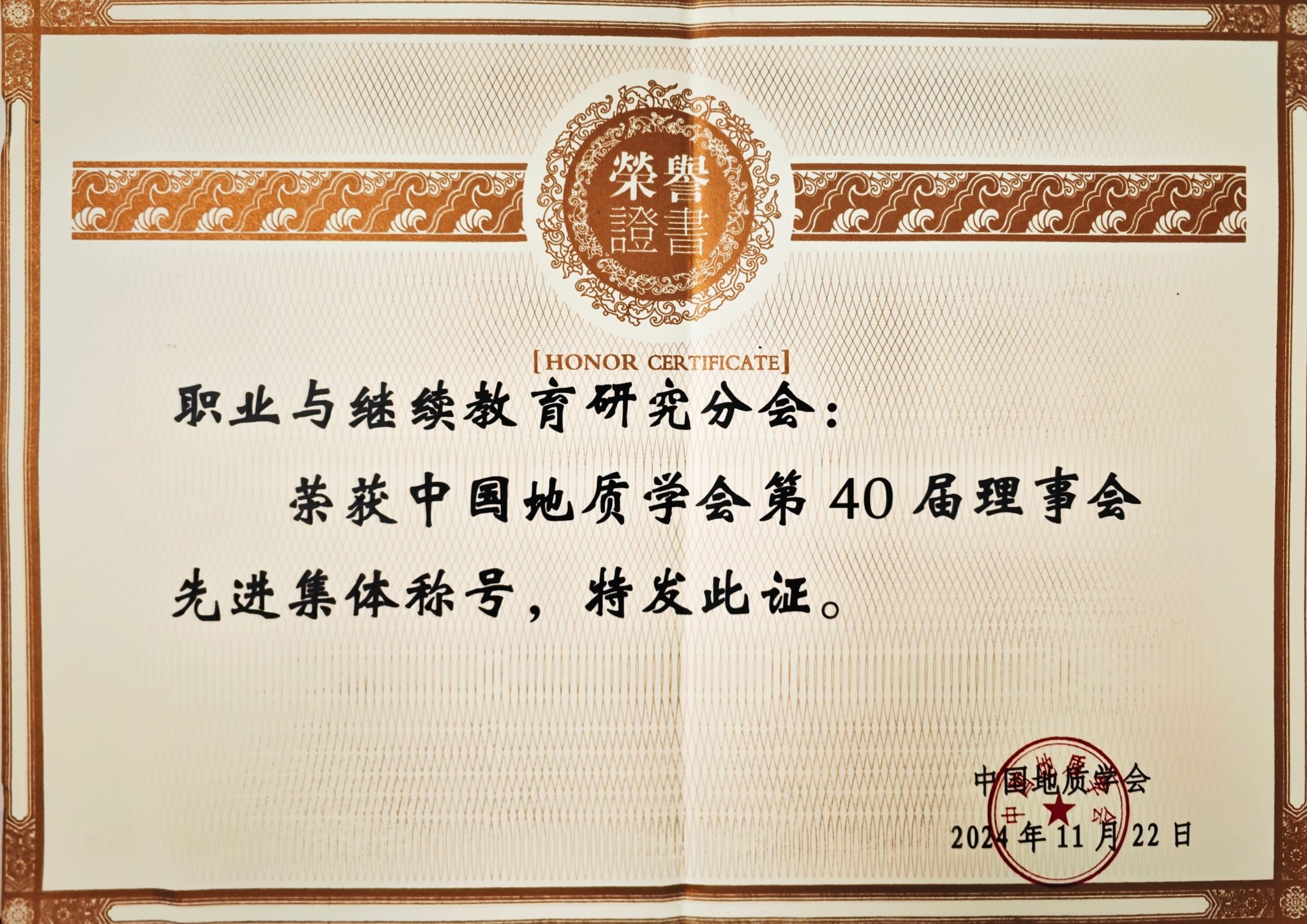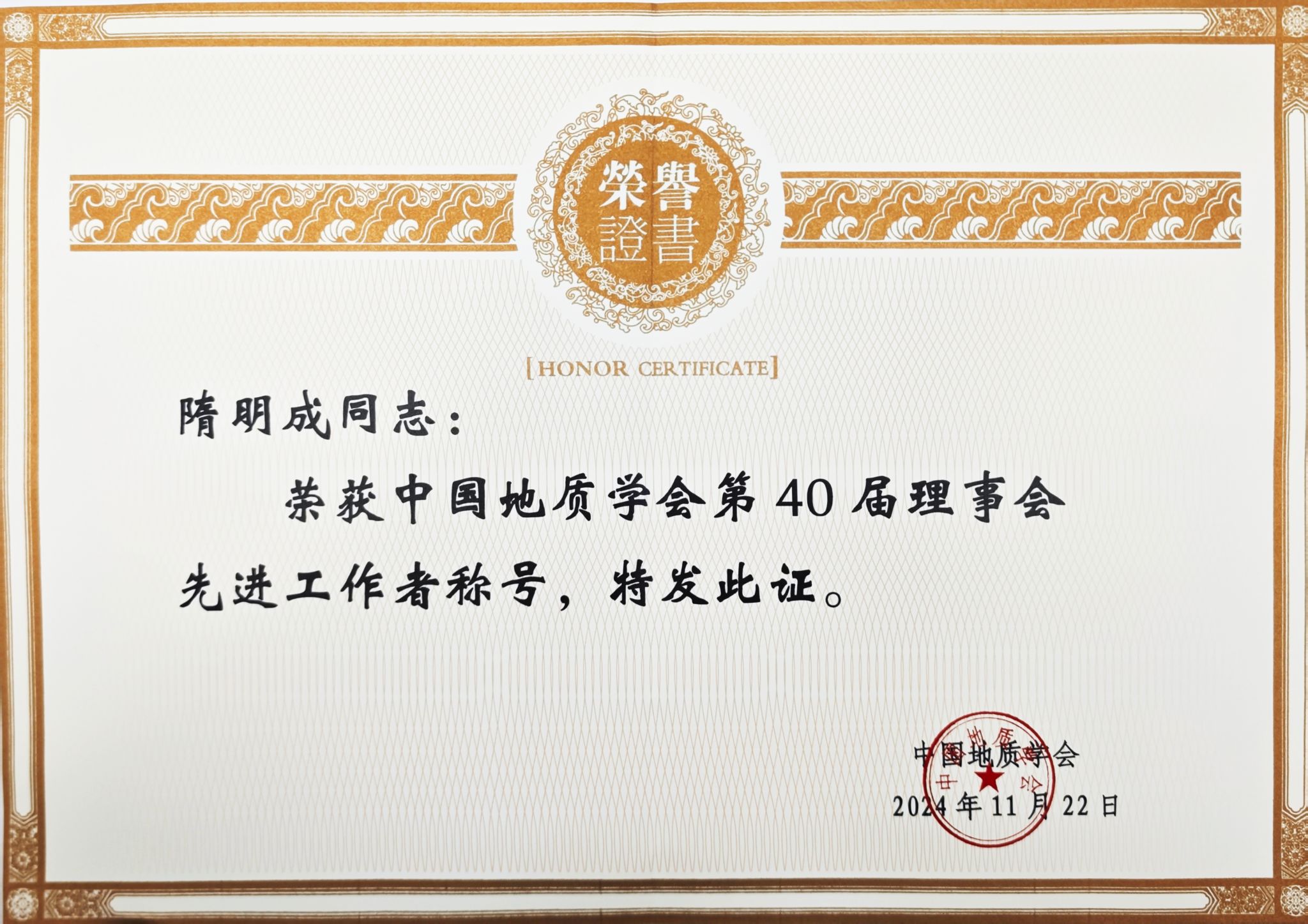 (通讯员 李燕飞 刘妍慧)11月22日,中国地质学会第十三次会员代表大会在北京召开,大会表彰了第40届理事会先进集体和先进工作者。挂靠公司的职业与继续教育研究分会(以下简称“研究分会”)荣获中国地质学会第40届理事会先进集体,隋明成秘书长荣获中国地质学会第40届理事会先进工作者。