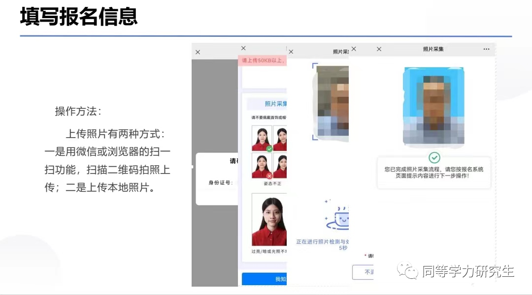 5.实人认证失败怎么办?实人认证失败后,可在填写报名信息页面补充实人认证材料(一张手持身份证照片),由人工进行实人认证审核。也允许考生删除已上传用于实人认证的照片,再重新拍照上传。