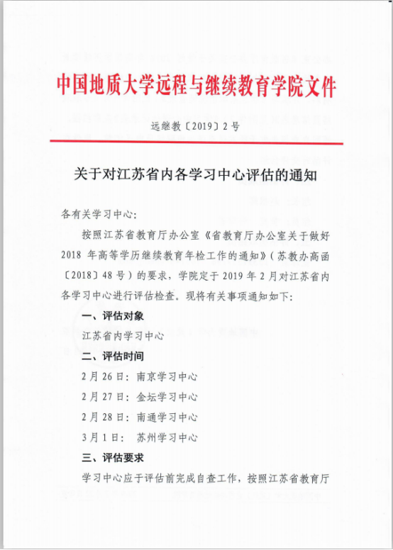 远教院【2019】2号《关于对江苏省内各学习中心评估的通知》