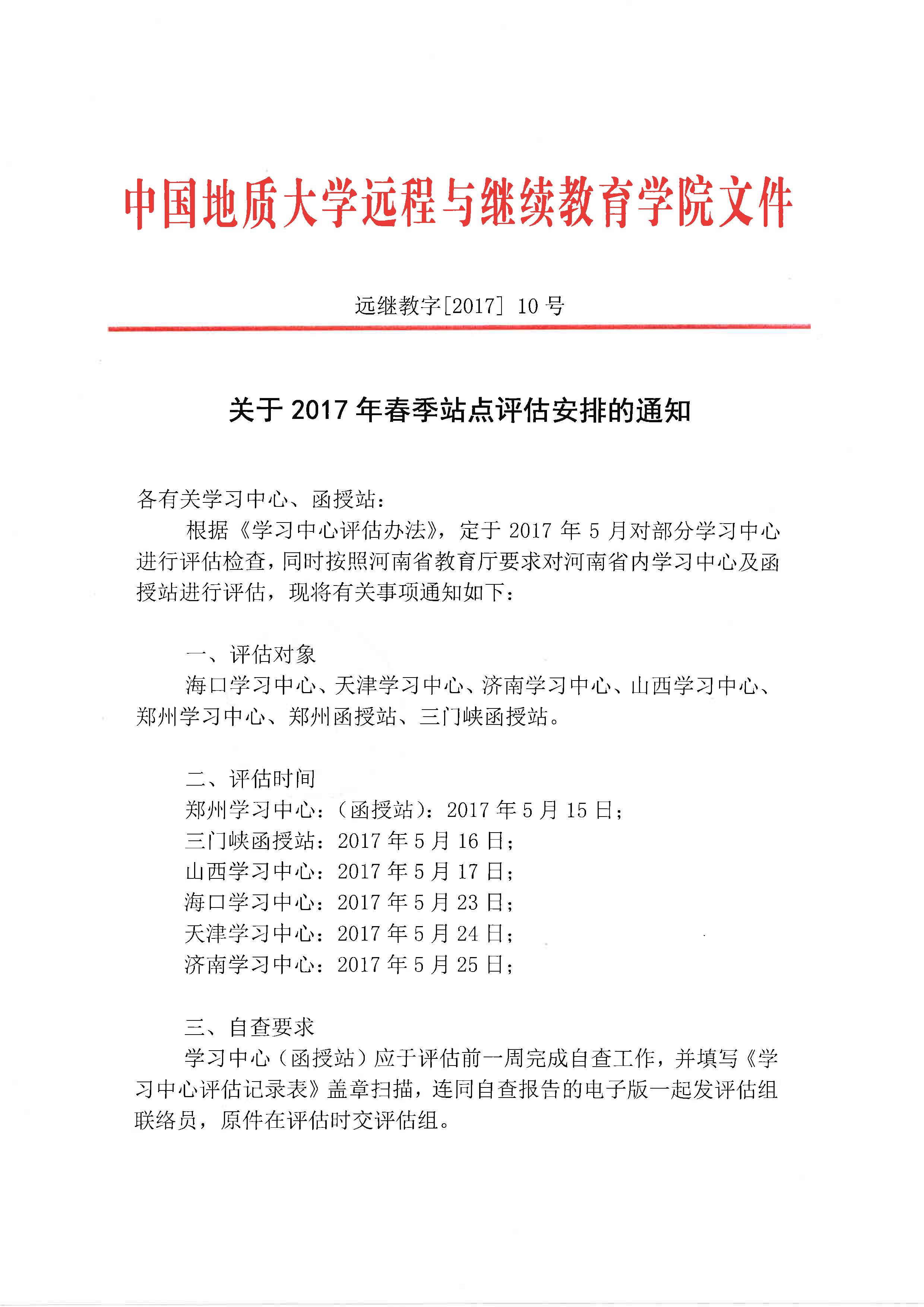 远继教字[2017]10号《关于2017年春季站点评估安排的通知》