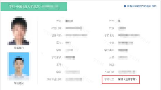 注意:请核对此页面的录取照片、姓名、出生日期、证件号码、学籍状态等信息