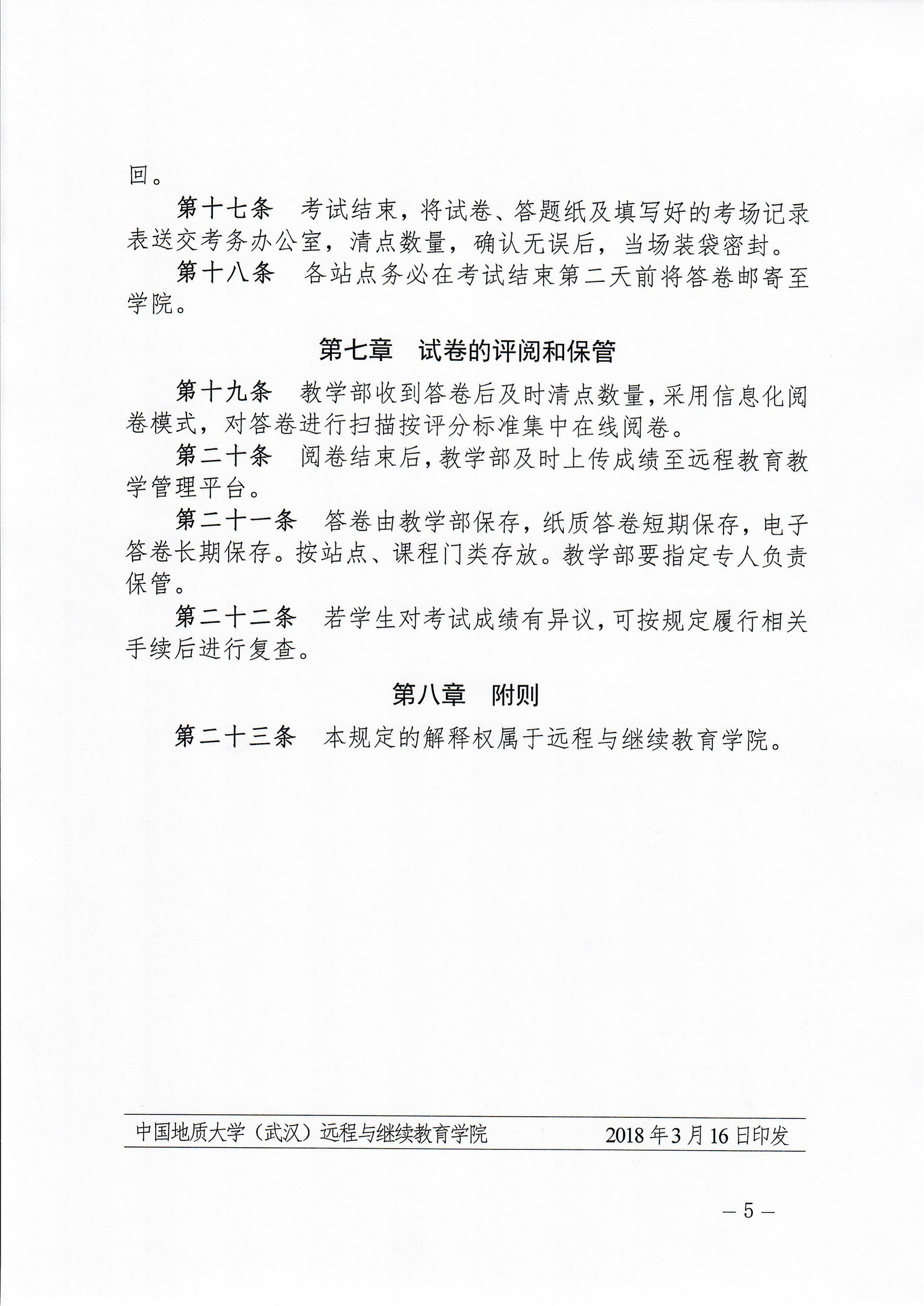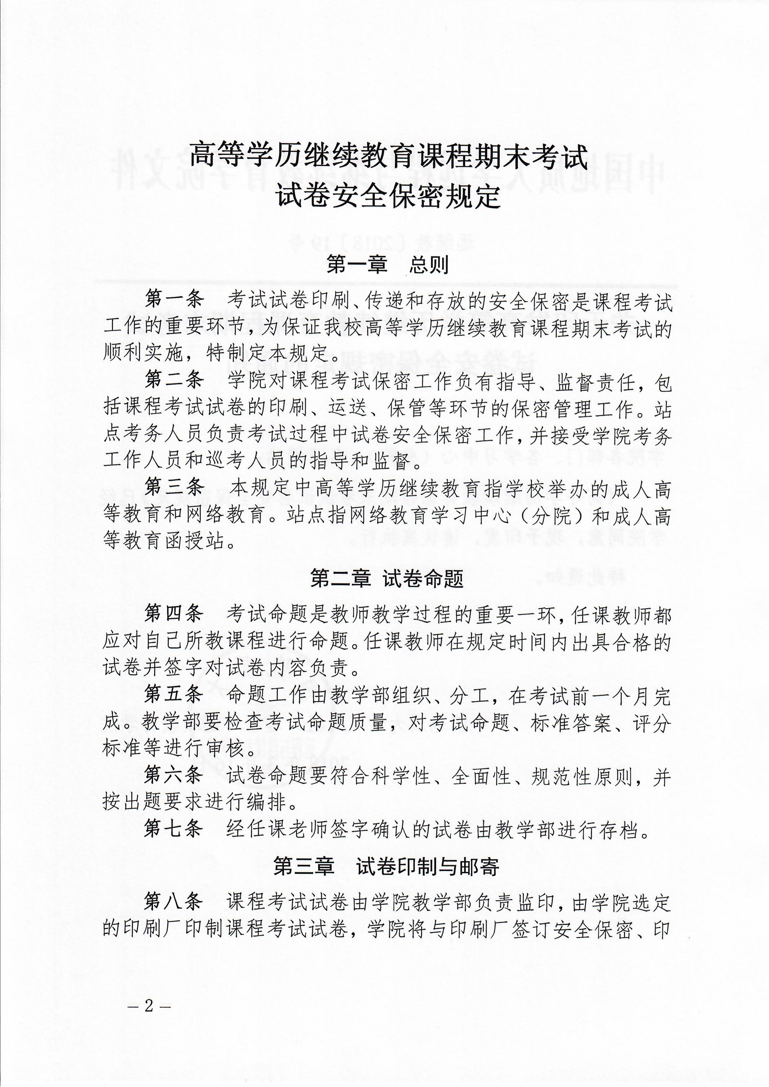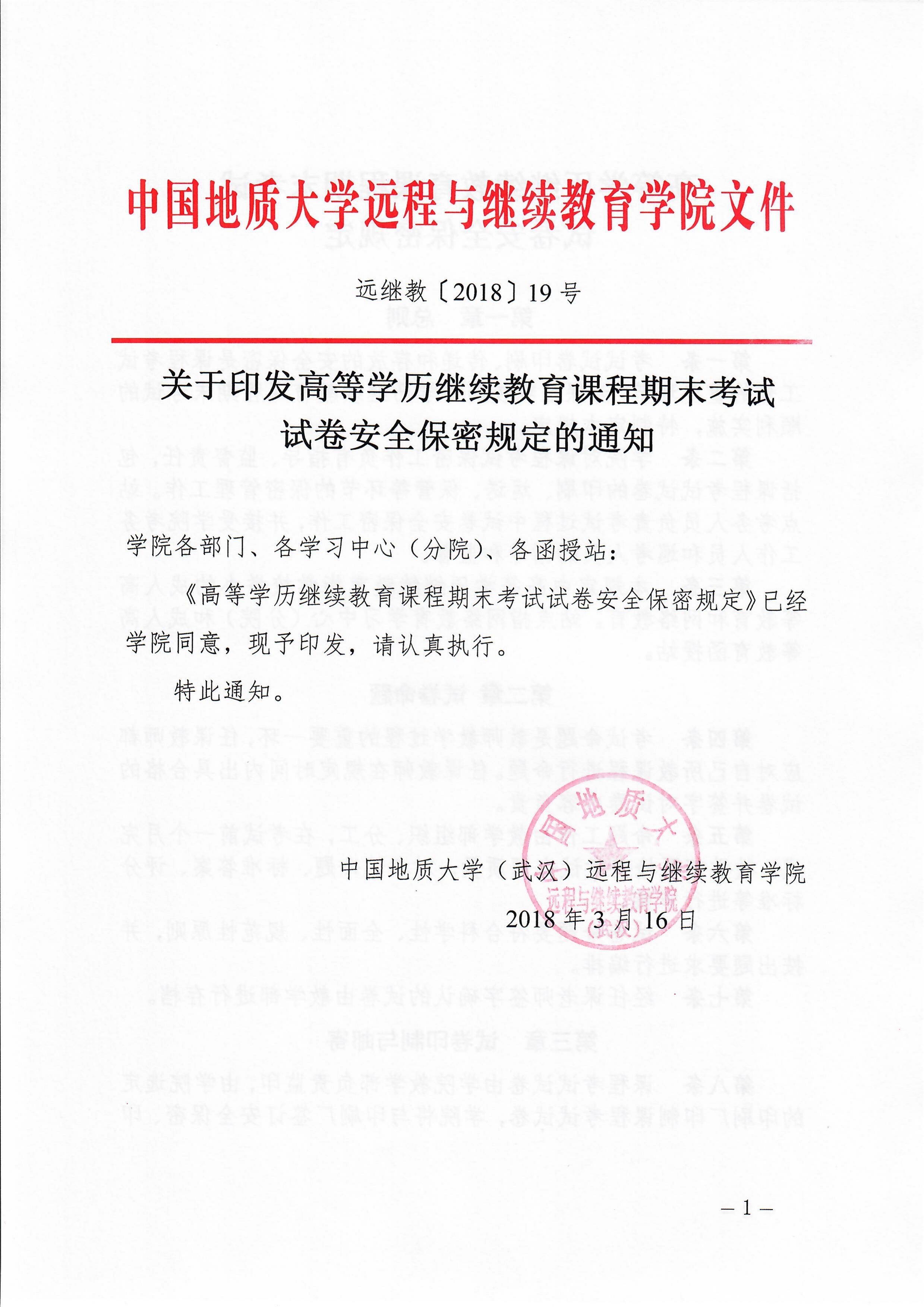 远继教[2018]19号《高等学历继续教育课程期末考试试卷安全保密规定》