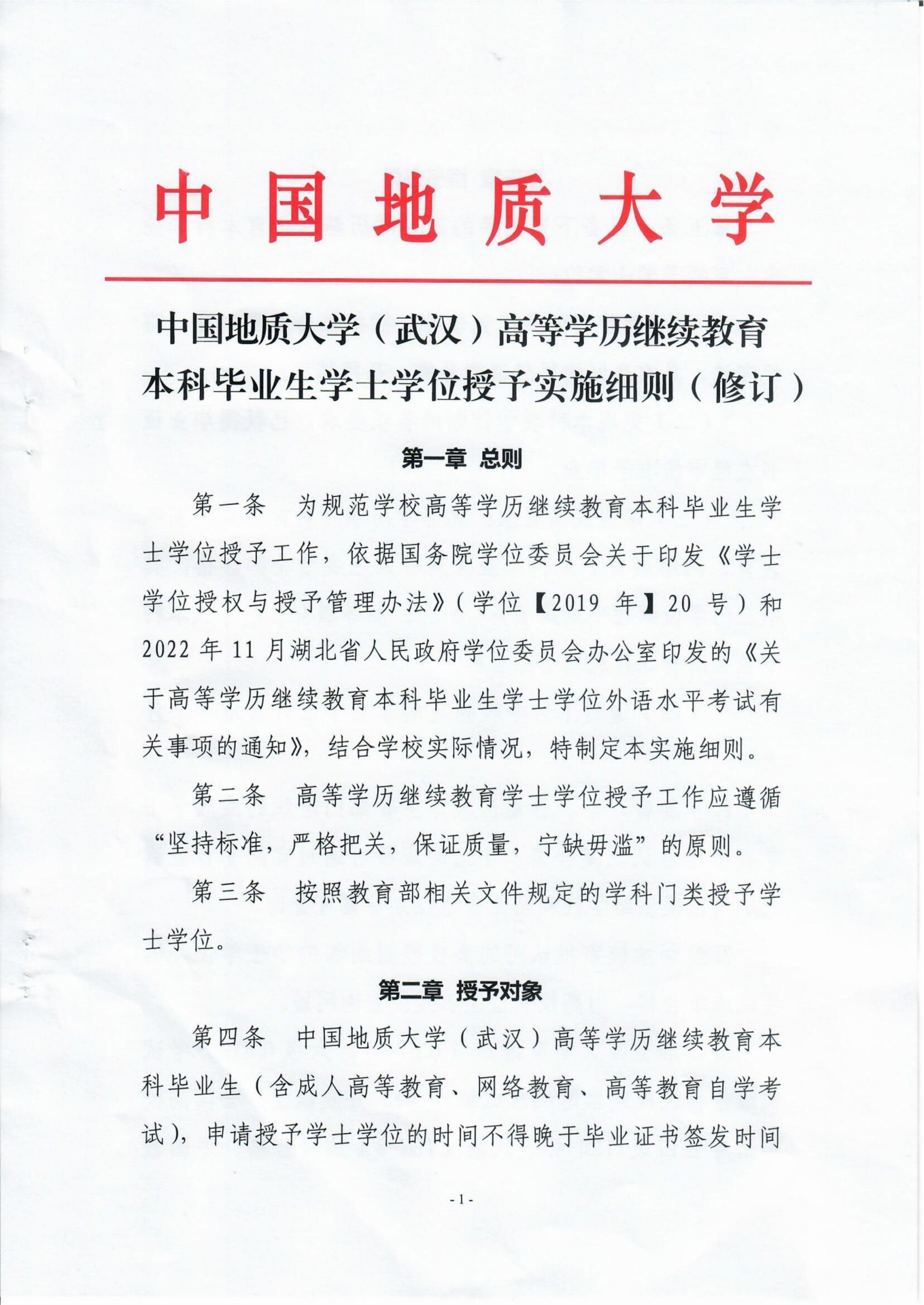 中国地质大学(武汉)高等学历继续教育本科毕业生学士学位授予实施细则(修订).pdf