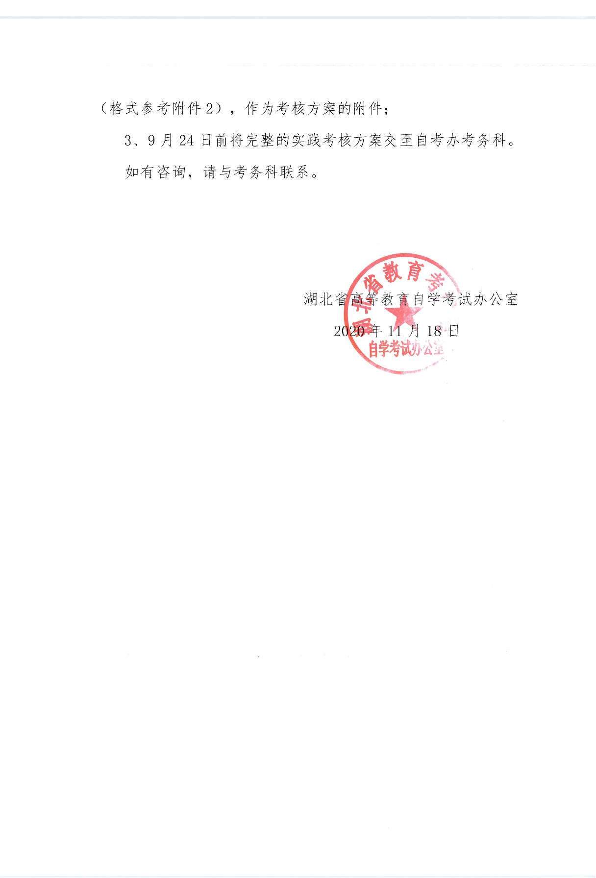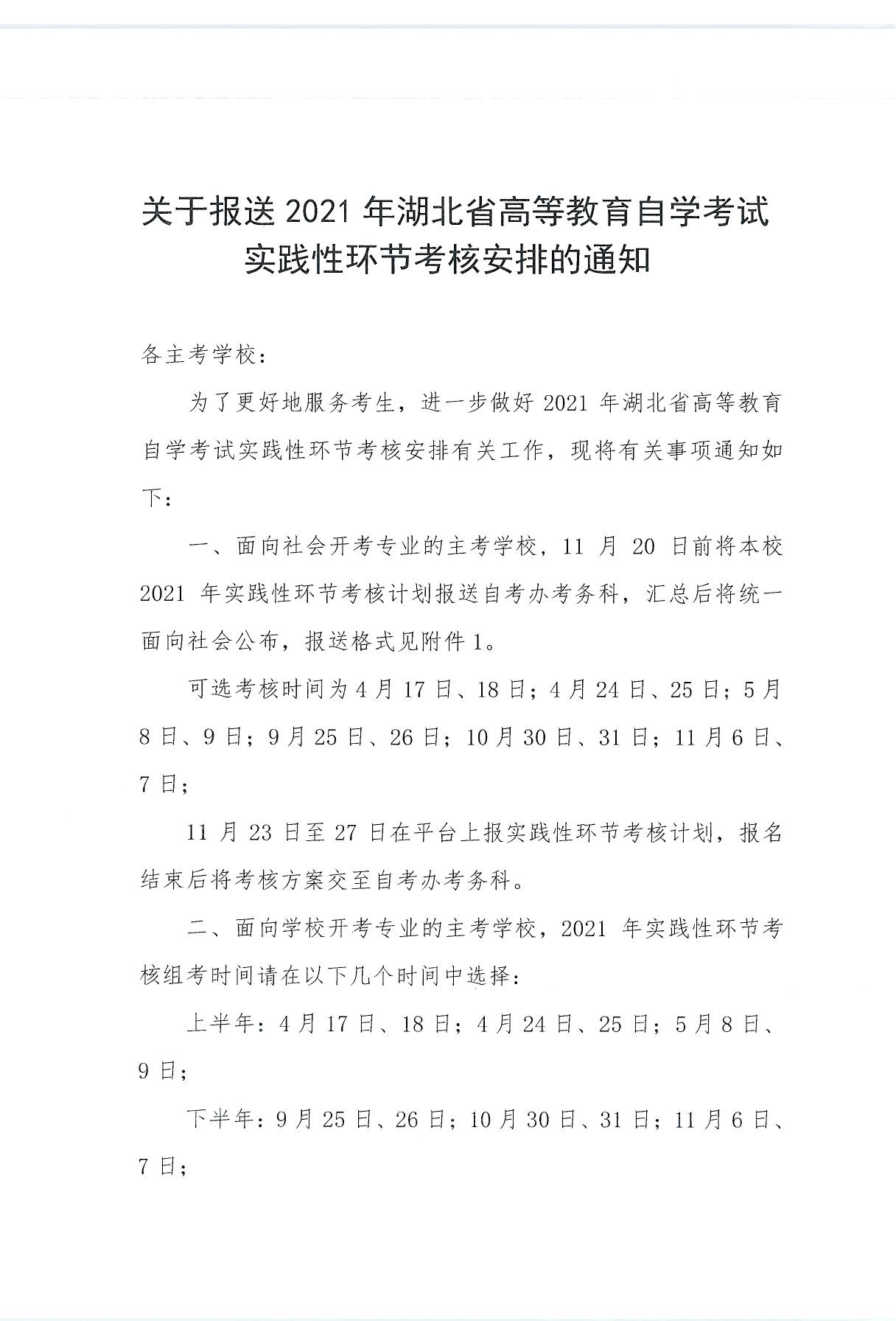 关于报送2021年湖北省高等教育自学考试实践性环节考核安排的通知