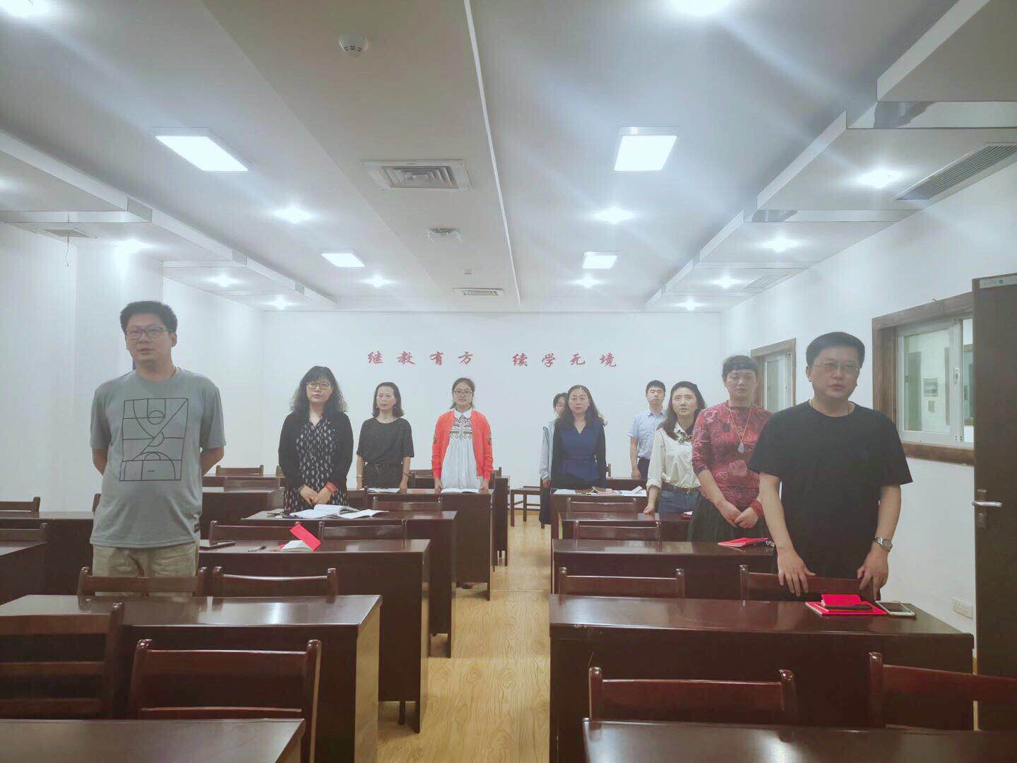 活动开始,由支部书记段秀燕同志带领全体党员齐唱《中华人民共和国国歌》,重温入党誓词,并在李燕飞同志的带领下齐读党章第一章第6-8节,支部委员刘萍同志汇报四月份党费收缴情况,即支部党费全部收缴完成。