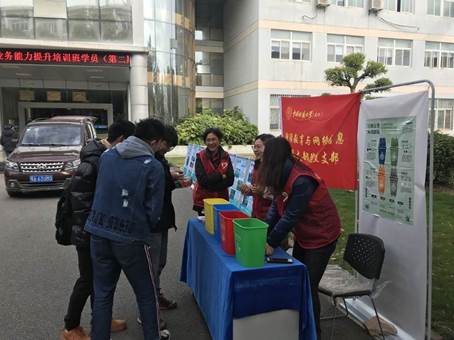 院直支部联合李四光公司环保志愿者协会,共同开展环保活动,在向广大师生宣传保护地球资源的同时,引导公众提升环保意识。活动过程中,参与垃圾分类小游戏的师生们,将随机选取的10张小卡片投入相应的垃圾分类箱中(分别是可回收垃圾、厨余垃圾、有害垃圾和其他垃圾),正确率达到80%即可获得小纪念品一份,如果答案错误,院直支部党员现场科普正确分类。