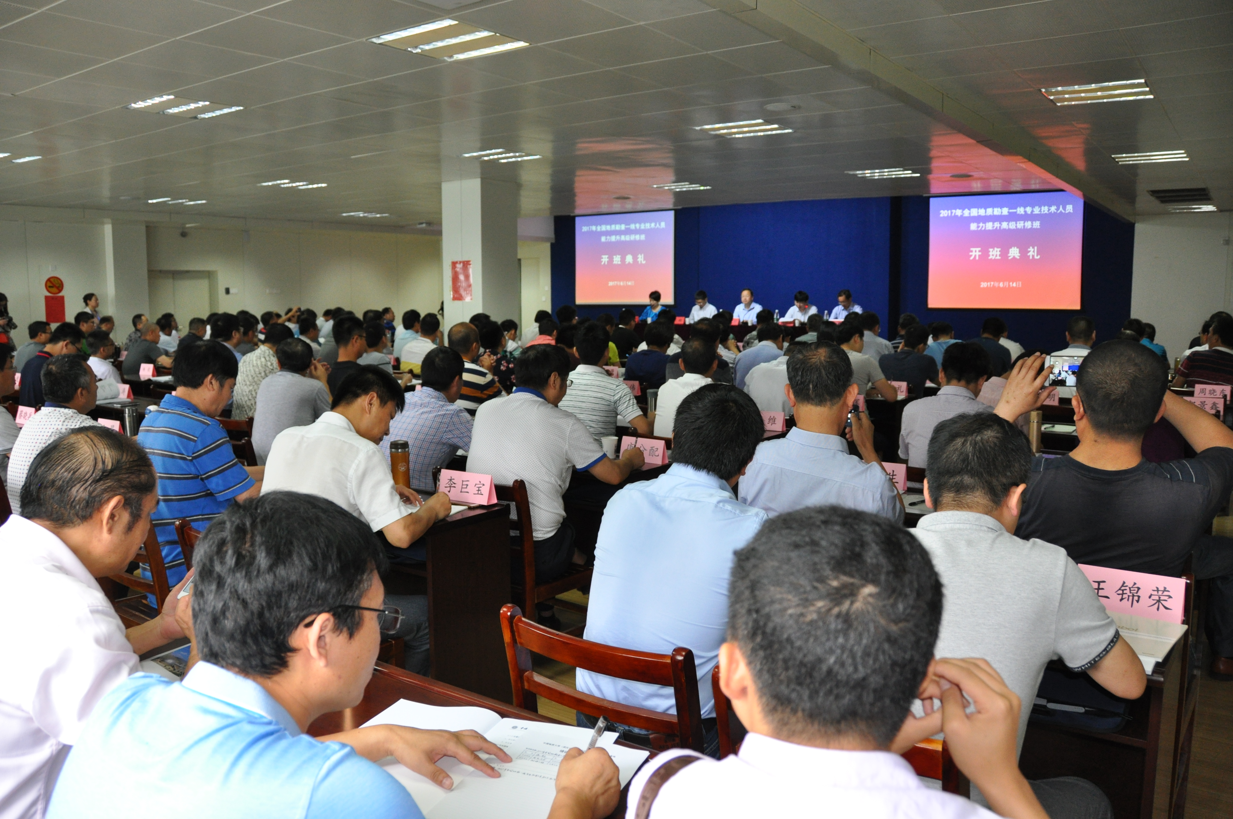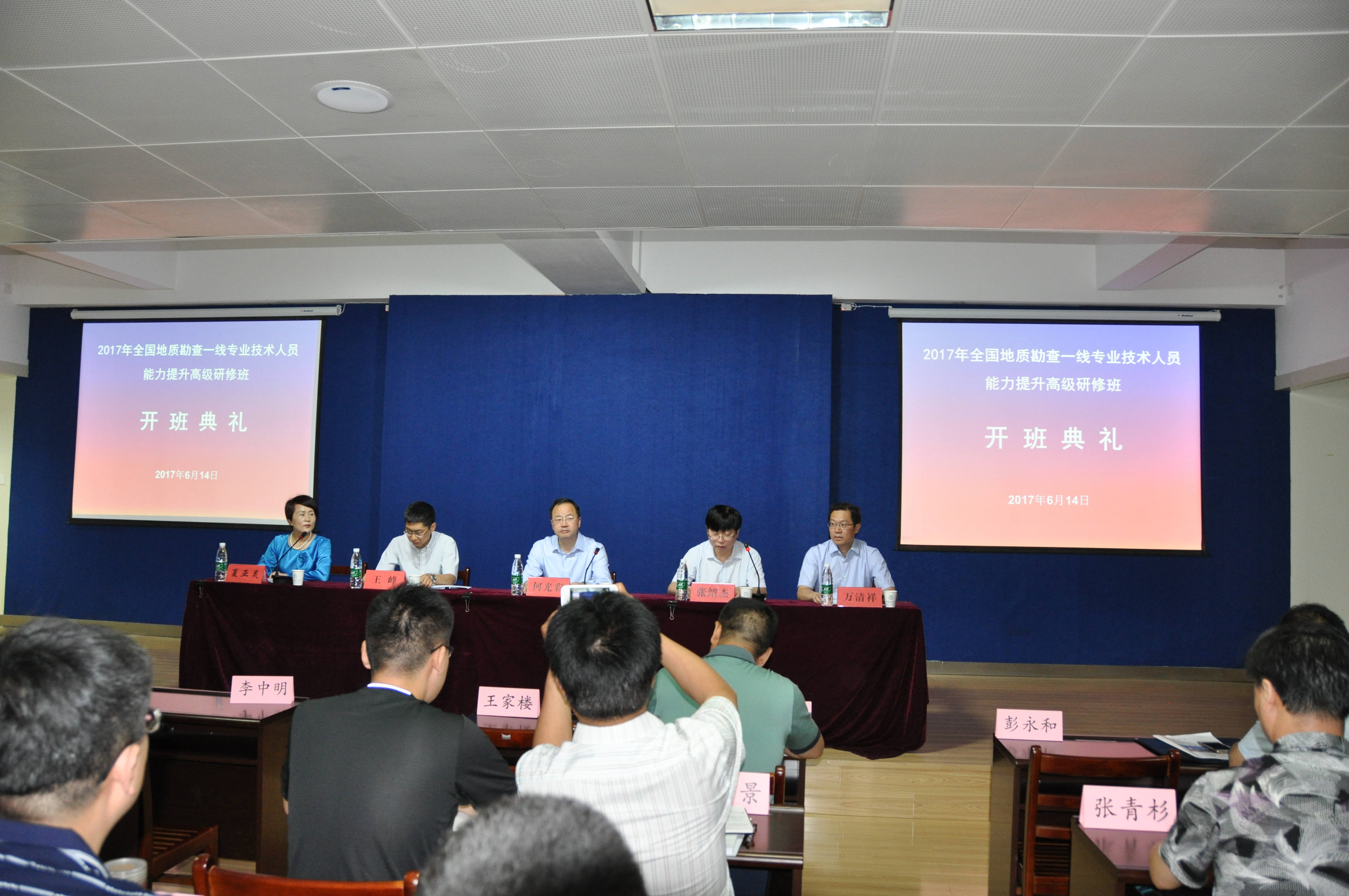 6月14日,2017年全国地质勘查一线专业技术人员能力提升高级研修班开班典礼在公司Beats365唯一官网入口举行。公司党委书记何光彩、副董事长万清祥,国土资源部勘查司副司长王峰、人事司副司长张绍杰,湖北省国土资源厅副厅长夏亚灵等参加了开班典礼。