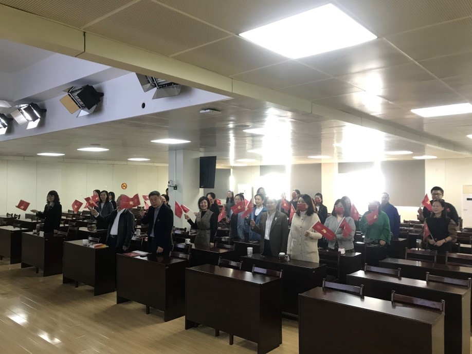 10点,校庆大会正式开始,老师们认真收听收看致辞、贺信,备受振奋、深受鼓舞,现场响起阵阵掌声。