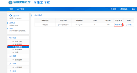⑴进入员工工作室,找到我的课程,点击“开始学习”