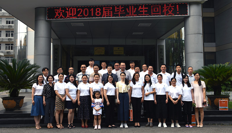 毕业生代表们与院士、校领导在弘毅堂正门前合照
