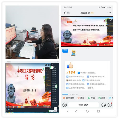 3月26日由东北工程技术公司监察督导科长、高级讲师王艳老师为学习中心学员带来了一堂精彩的思政课——《马克思主义创立与发展》。学习中心各位班主任及各班同学纷纷加入钉钉课堂,接受了一次灵魂的洗礼。课后同学们对本次课程纷纷发表感言,这是一次有意义的课程,今后学习中心将开展更多形式的活动,把立德树人踏踏实实的落实到学习中心的工作中。