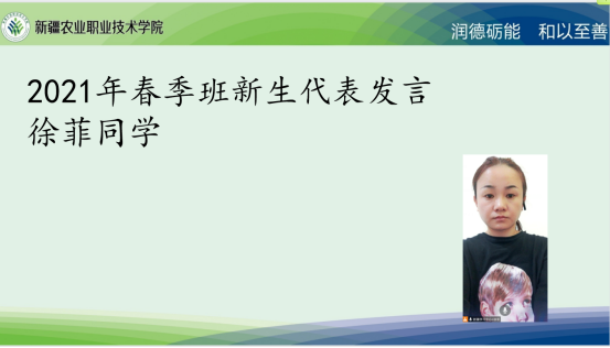 典礼上,新生员工代表徐菲同学做了精彩发言。她对新疆学习中心老师以员工为中心,牺牲自己休息时间举办此次线上开班典礼和导学活动表示感谢。她表示,随着社会的快速发展和工作、生活节奏的加快,知识淘汰的周期也越来越短,人们一次性学习的时代已经过去了,终身教育,终身学习已是一种必然。这对同学们的能力提出了更高的要求,不仅要掌握专业技能,而且要掌握网络技术,所以必须调整自己的知识结构,培养自己的创造能力,获取更多的知识和信息,适应社会经济发展的要求,把在公司学到的知识运用到实际工作中去,在各自的岗位上施展才华,谱写壮丽的人生篇章。