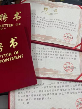 会上,班干部现场签署了班干部责任书,给他们颁发了聘书以及精美的小礼品。对此,各位班干部也表示会尽到自己的权利与义务,严格要求自己,严于律己,为班级同学服务。