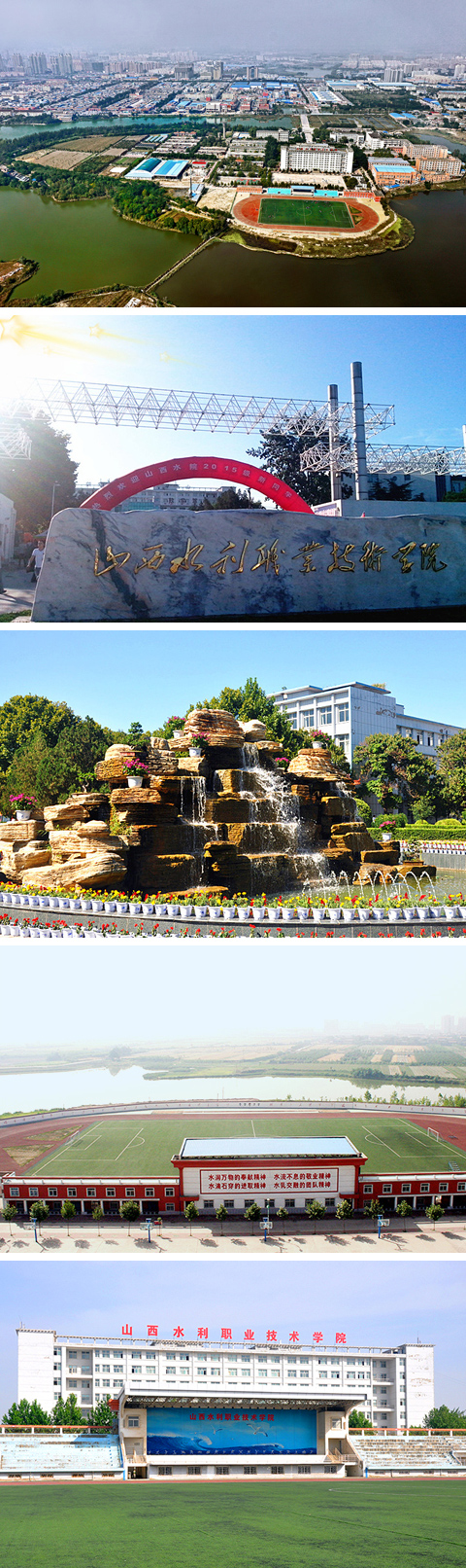 公司主校区位于运城市盐湖区安邑水库湖心岛上的魏豹城遗址,占地355亩,校园四周绿水环绕,碧波荡漾,岸柳拂堤,鸟语花香,是公司水利水电建筑工程、建筑工程技术、计算机应用技术、道路与桥梁工程技术、测绘地理信息技术等高职专业办学场所,技师部的办学场所也在运城校区;太原小店校区位于太原市小店区汾东教育城,占地168亩,环境优美,设施完善,是公司机电一体化技术、建设工程管理、环境监测技术、大数据与会计等高职专业的办学场所;太原胜利桥校区位于太原市胜利桥西,占地32.3亩位置优越,交通便利,是继续教育和行业培训的办学场所。